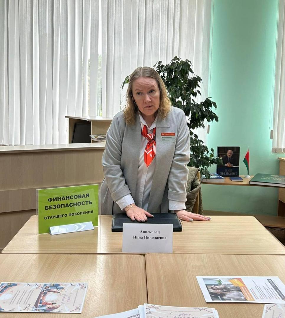 1 октября в Хойникской центральной районной библиотеке прошел урок финансовой грамотности «Финансовая безопасность для старшего поколения» с участием начальника отдела розничных продаж ЦБУ «Белагропромбанк» Анисковец И.Н.