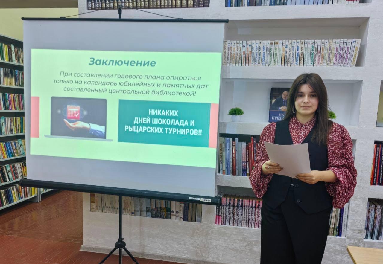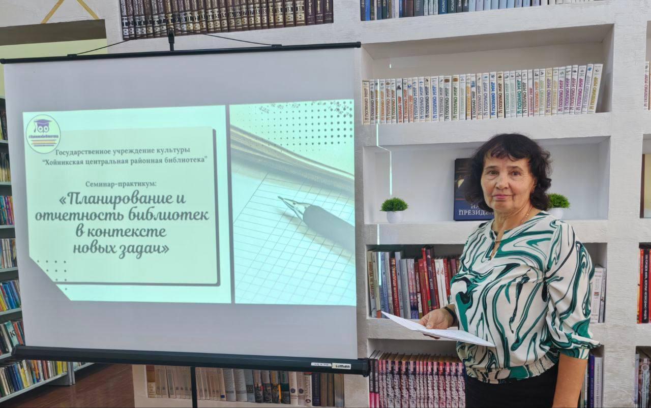 С приветственным словом к участникам семинара-практикума обратилась заместитель директора ГУК «Хойникская центральная районная библиотека» Бурковская Виктория Владимировна. Она так же представила доклад на тему «Планирование как составная часть работы библиотеки на 2026 год», обозначив ключевые направления развития и подчеркнув значимость точного и грамотного составления планов на предстоящий год.