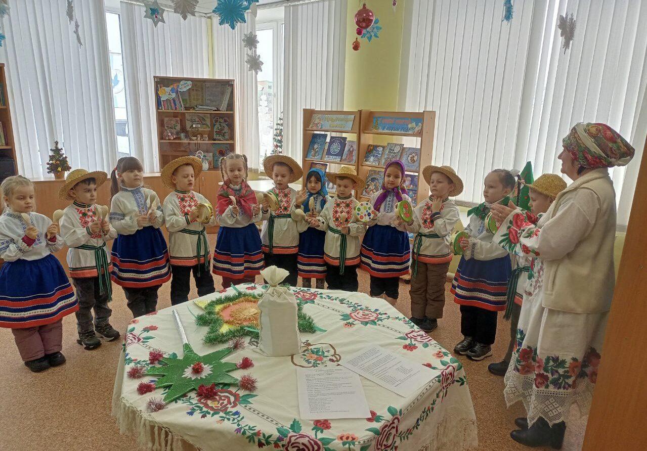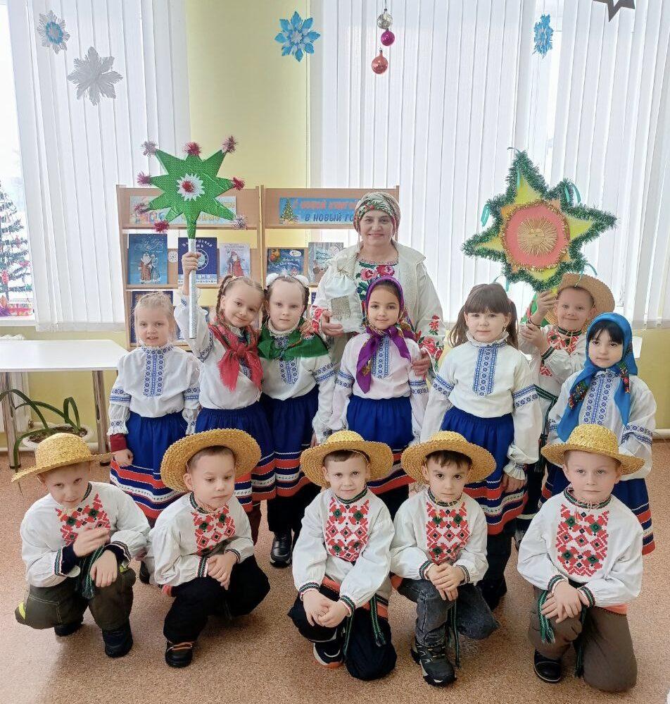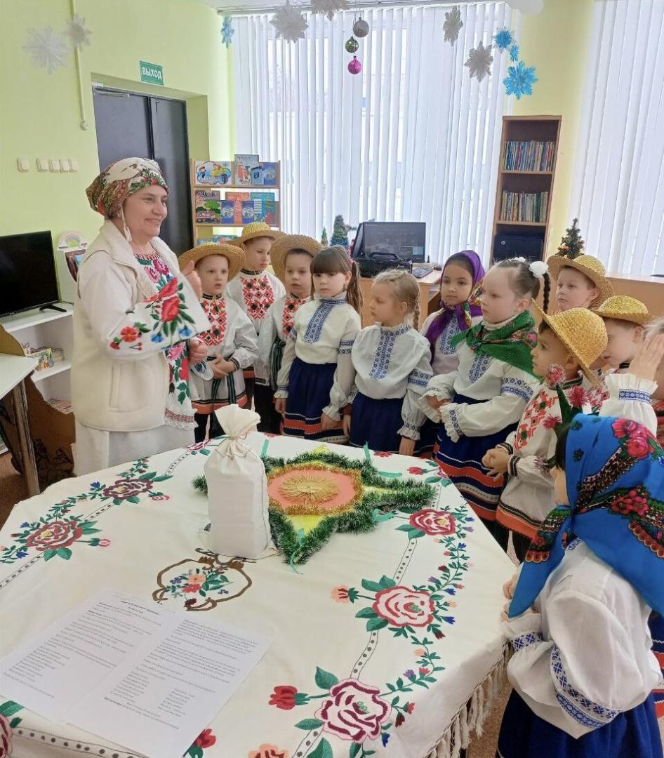 13 января в Хойникской центральной районной библиотеке для ребят ГУО «Дошкольный центр развития ребенка г.Хойники» прошел час фольклора «Наступили Святки - начались колядки».