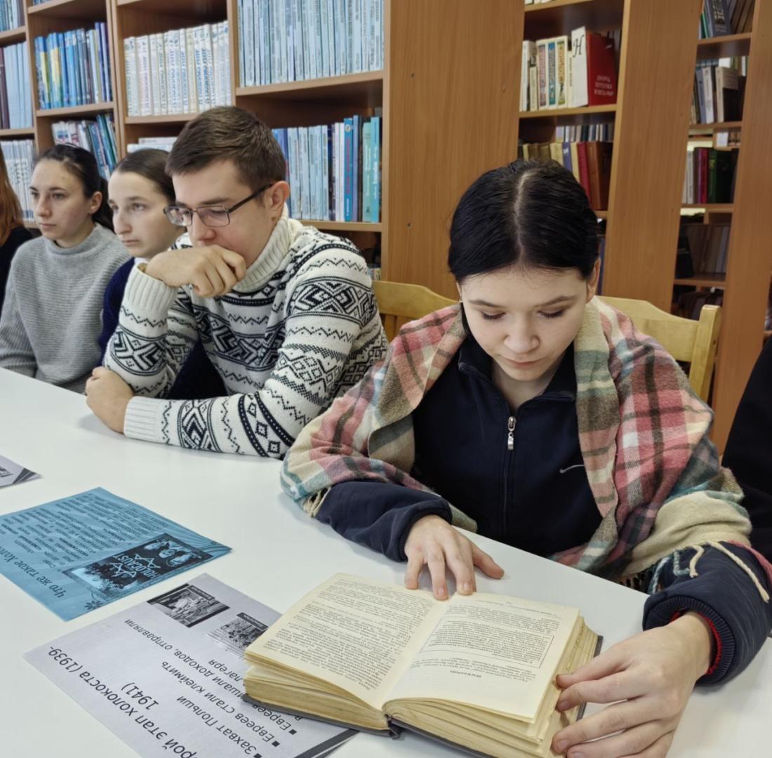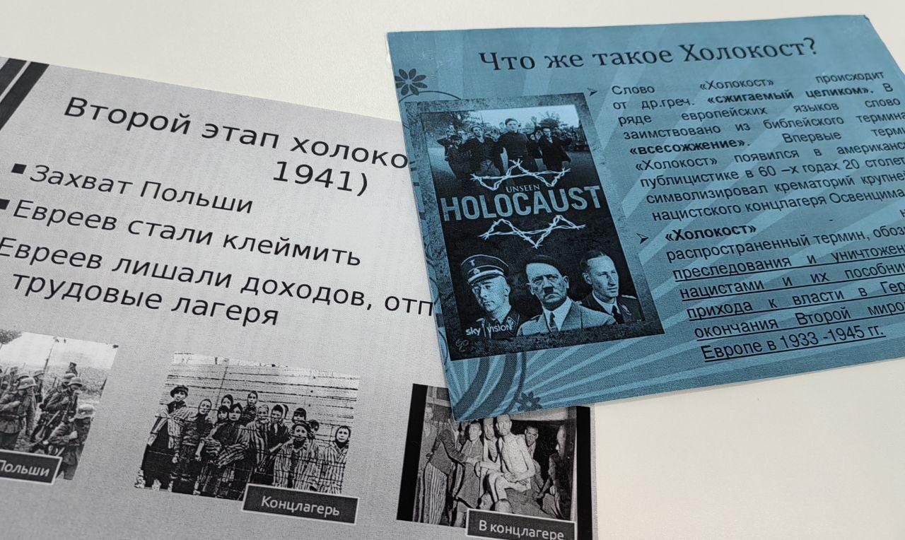 Сотрудник библиотеки напомнила ребятам о значении слова «Холокост», рассказала о замыслах нацистов против евреев, славян и других народов, а также о жестоких преследованиях и массовых убийствах.