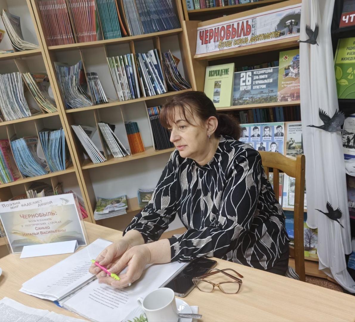 В преддверии памятной даты 40-летия со дня аварии на Чернобыльской АЭС, 10 апреля в Хойникской центральной районной библиотеке для участниц любительского объединения «Встреча» прошел поэтический час «Чернобыль: память в поэтических строках Санько Натальи Васильевны».